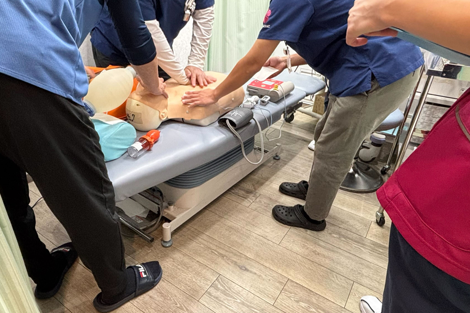 当院では、万が一の緊急事態に即座に対応できる体制づくりの一環として、CPR(心肺蘇生法)シミュレーションを実施しました。